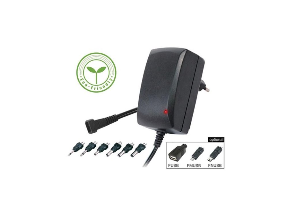 - 1000mA - napájení 230V,50Hz, výstupní napětí 3V, 4,5V, 5V, 6V, 7,5V, 9V, 12V DC, výstupní proud 1000mA, výstupní konektory Jack 2,5mm; Jack 3,5mm; 3,5 x 1,35mm; 5 x 2,1mm; 5,5 x 1,5mm; 5,5 x 2,5mm. USB konektory: typ A; mini USB; mikro USB. Rozměry: 75x43x32mm.