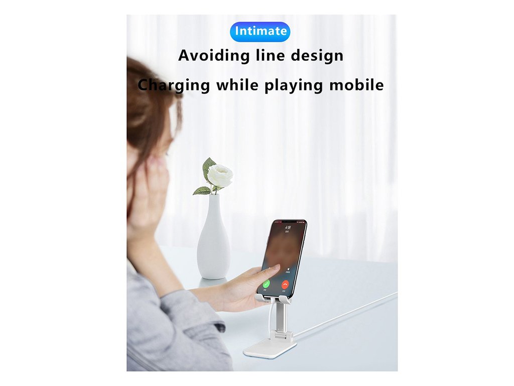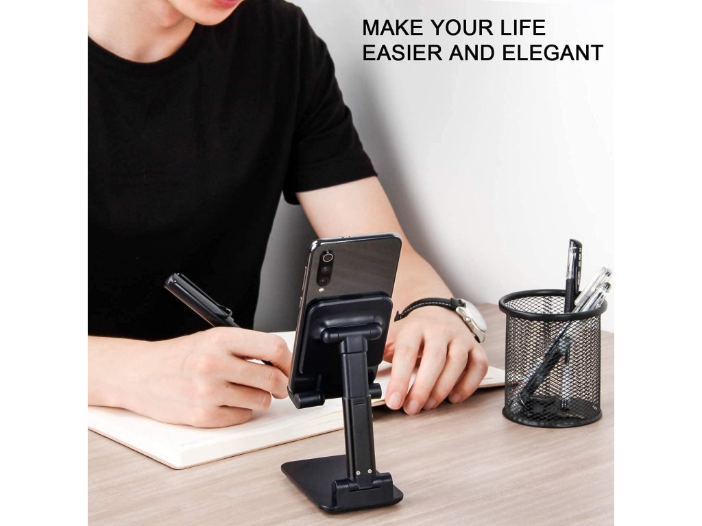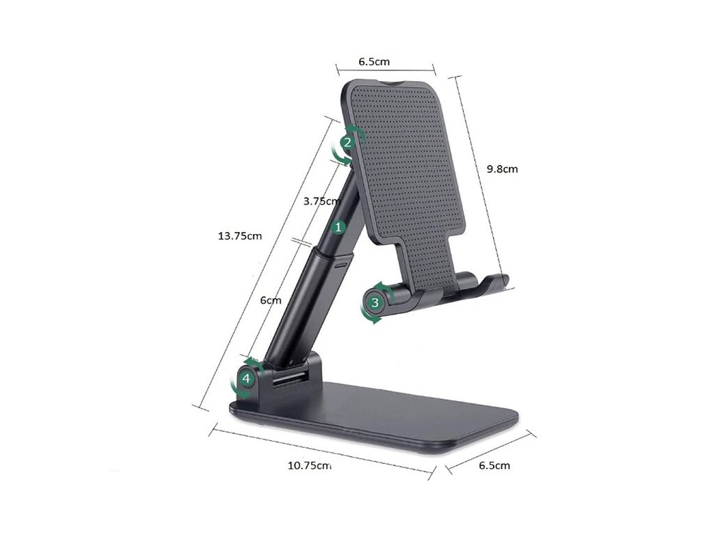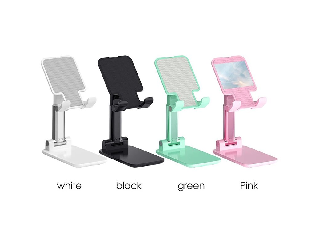 Flexibilní držák mobilního telefonu ve 4 barevných variantách, pro postavení na stůl. Držák je nastavitelný pro různé úhly pohledu, natavení výšky, možnost praktického složení pro cestování. Držák je vhodný pro použití mobilního telefonu, tabletu, malého monitoru a dalšího zařízení o velikosti od 4" do 8".