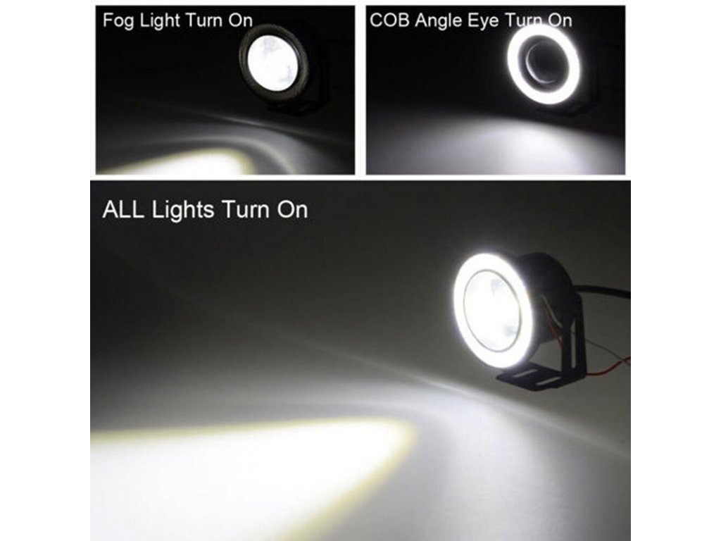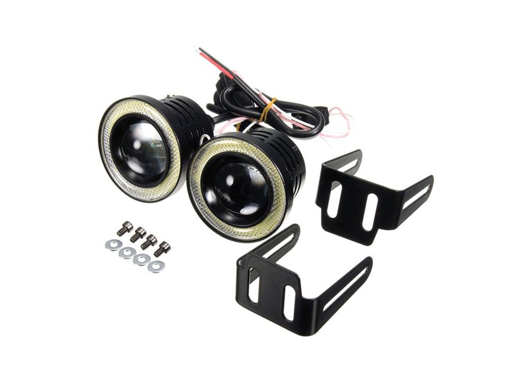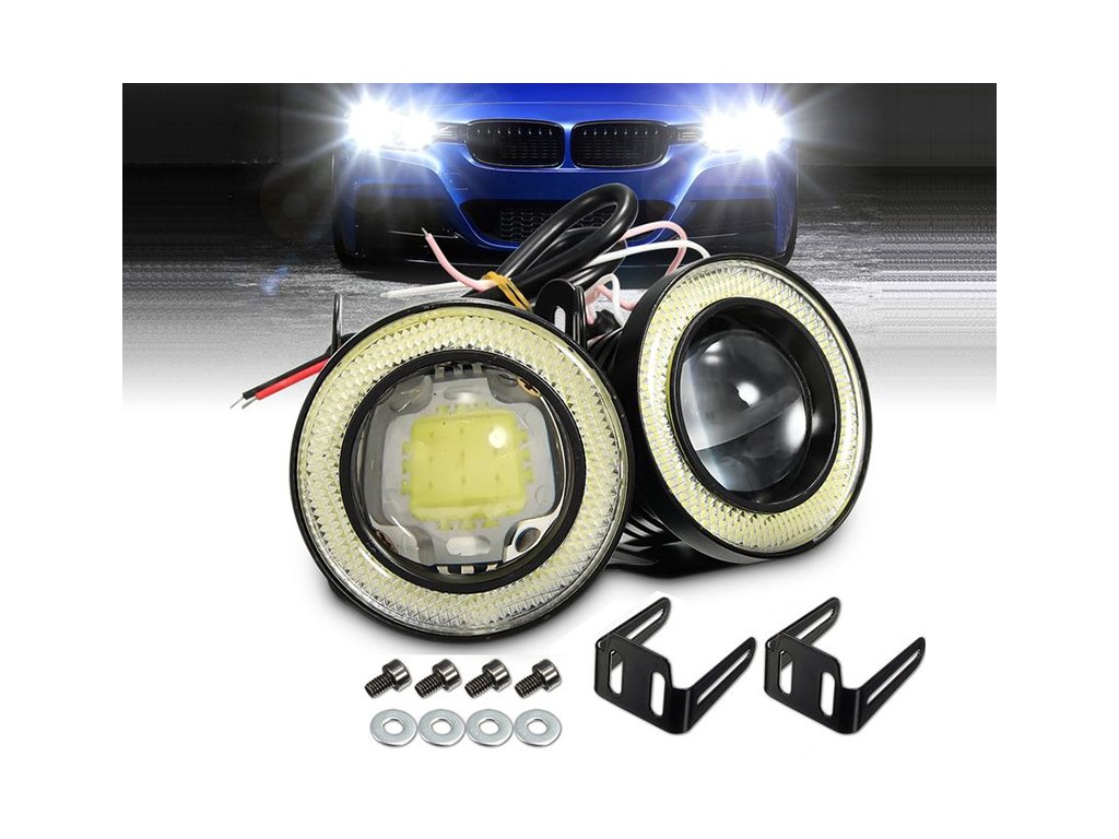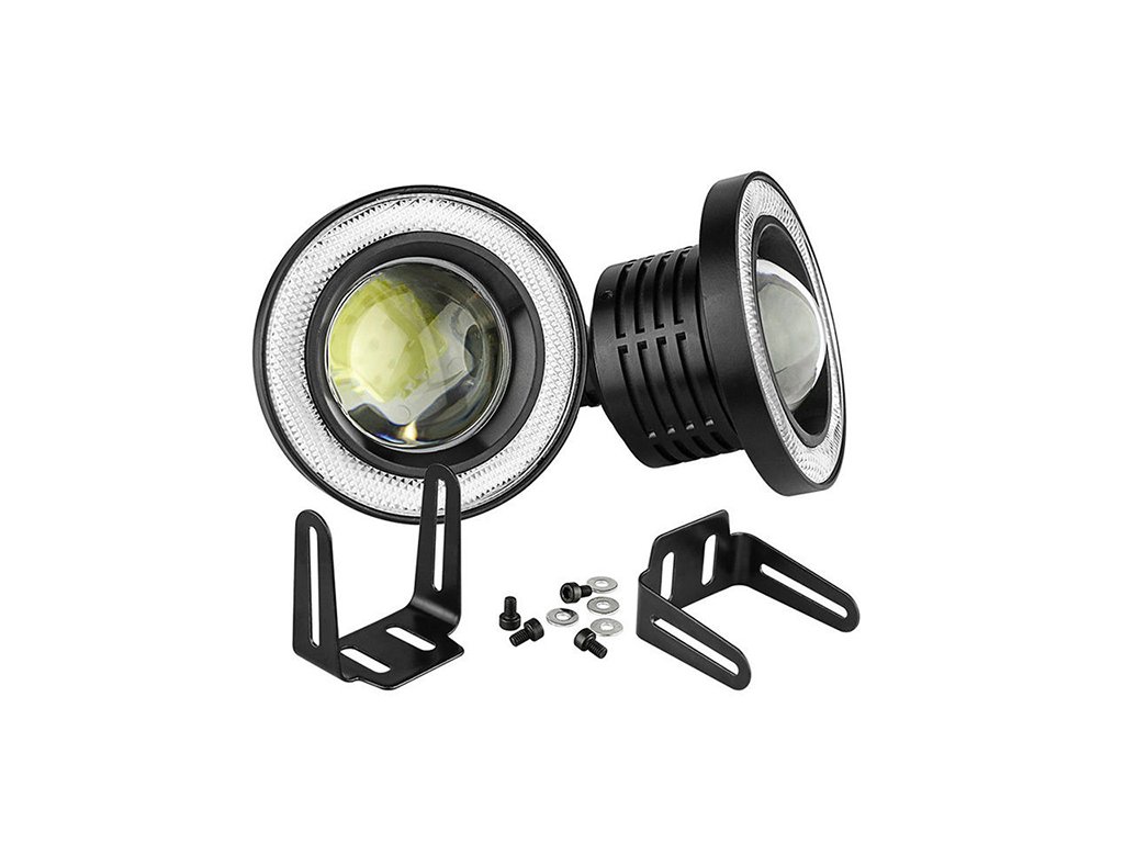 Dvě univerzální LED světla se svitem prstence (tzv. angel eyes) do automobilu. Vhodné pro použití na vozidla s palubním napětím 12V, do dodávek, nákladních vozů, ale také jako indikační osvětlení vysokých budov. Vysoce výkonné LED diody s nízkým odběrem (2x 10W) se silnou skleněnou čočkou, vodotěsné exteriérové provedení (krytí IP65), kruhový tvar světel s montážním držákem.
