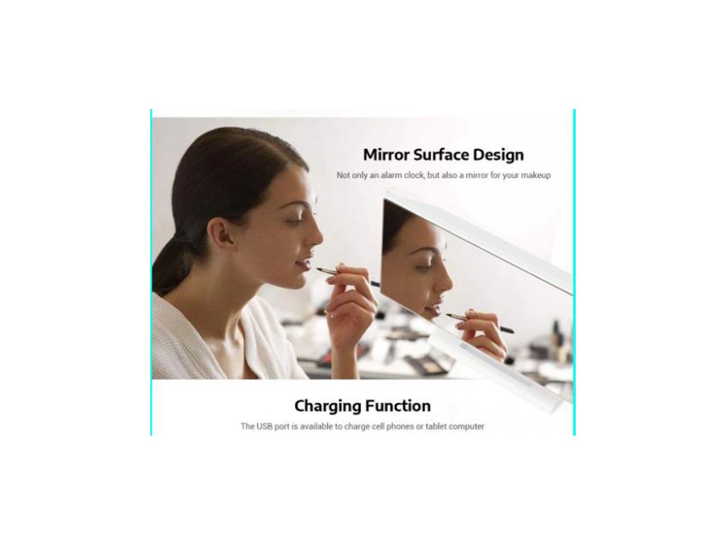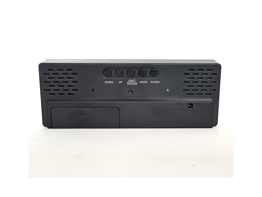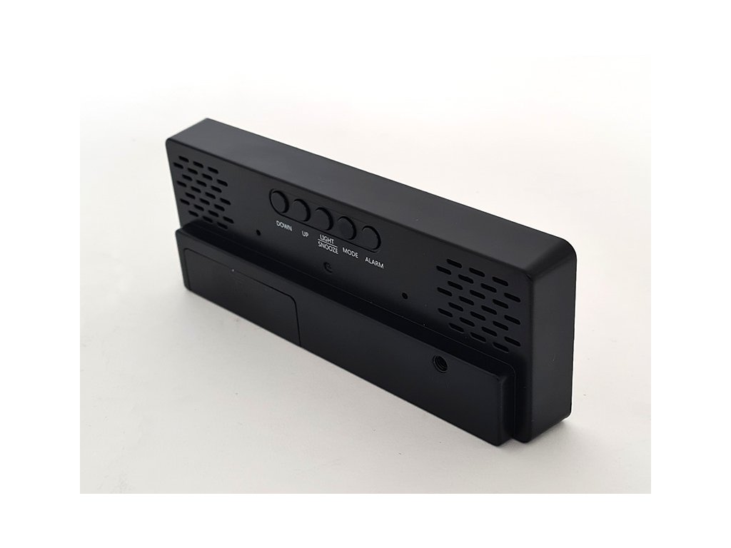 Tento multifunkční stolní budík má zabudovaný teploměr a automaticky nastavitelný jas dle aktuálního času. Poklepová funkce a zvukové čidlo (pro tlesknutí) pro rozsvícení displeje a zobrazení hodin