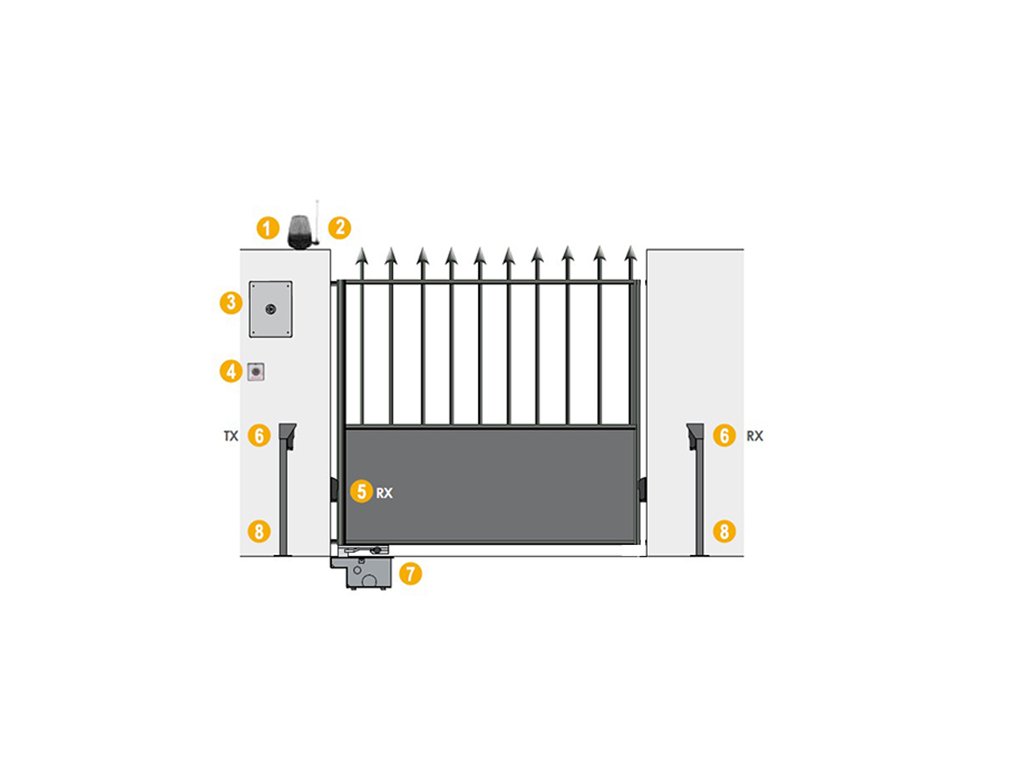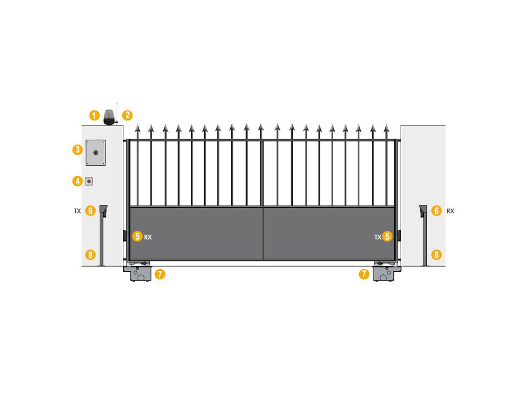 Doporučujeme také dokoupení a instalaci 2. páru fotobuněk pro fázi otevírání do prostoru dosahu křídel v otevřené poloze pro ochranu stojících předmětů v tomto prostoru.