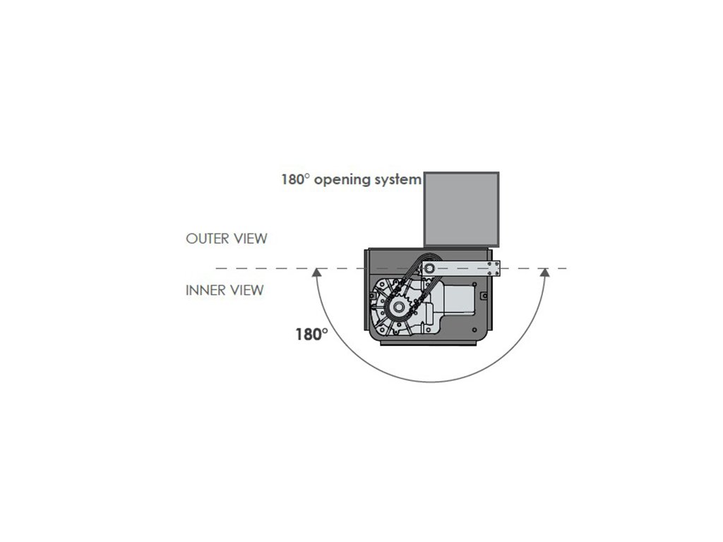 Pohon otevírá bránu dovnitř i ven dle způsobu instalace. V případě dokoupení převodového modulu A 008 budou pohony otevírat bránu až do 180°.