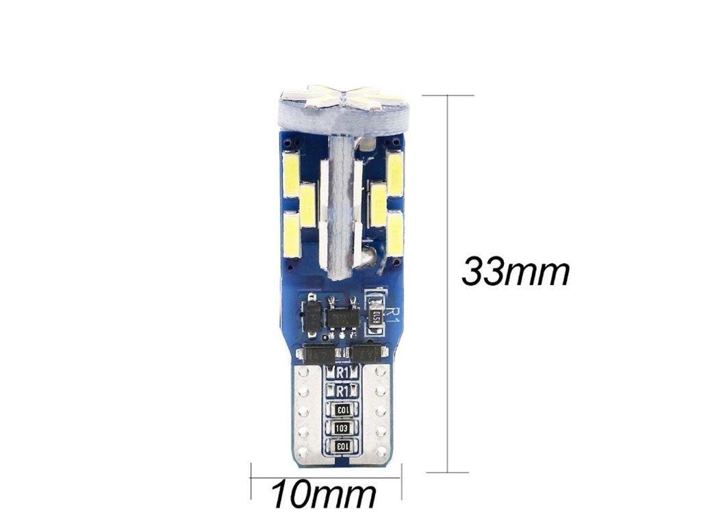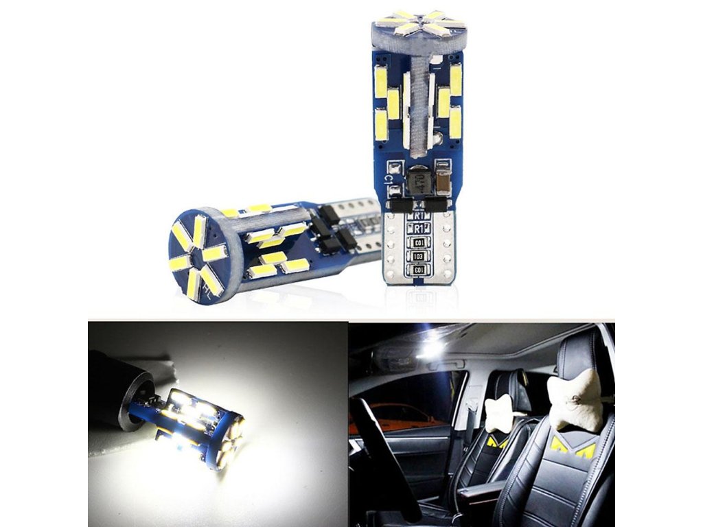 Autožárovka LED 2x T10 W5W 4014-30 Can Bus je vybavena paticí T10 W5W. LED autožárovka s předním svitem je osazena 30x LED čip SMD4014 nové generace s vysokou účinností světla a výkonu. Tato žárovka LED má velmi dlouhou životnost až 50 000hod. a to i při otřesech vozu, častém zapínání a vypínání. To je velmi velká výhoda oproti klasickým žárovkám. Barva svitu autožárovky je bílá a chromatičnost 5500 - 6000K a světelný výkon je 300lm.
