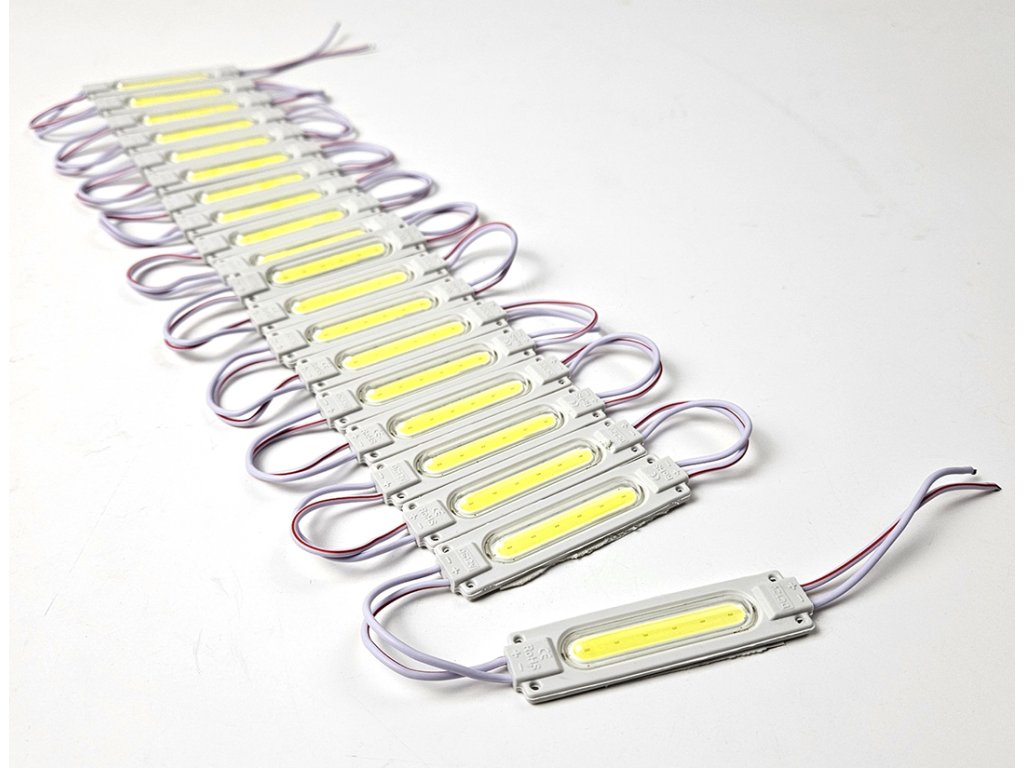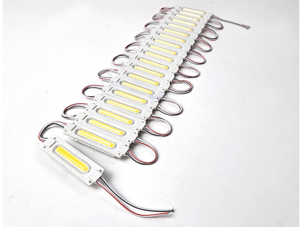 LED 3PP-COB-20PC- 20 kusů drátově propojených světelných modulů s oboustrannou samolepkou. Každý modul obsahuje COB diody se svitem bílé studené a bílé teplé barvy. Moduly lze různě napojovat jak do série, tak i paralelně dle potřeby. Světelné destičky jsou vhodné pro nasvícení světelných reklam, pro výrobu různých svítidel, nebo lze je použít i samostatně ve vnitřním i venkovním prostředí.