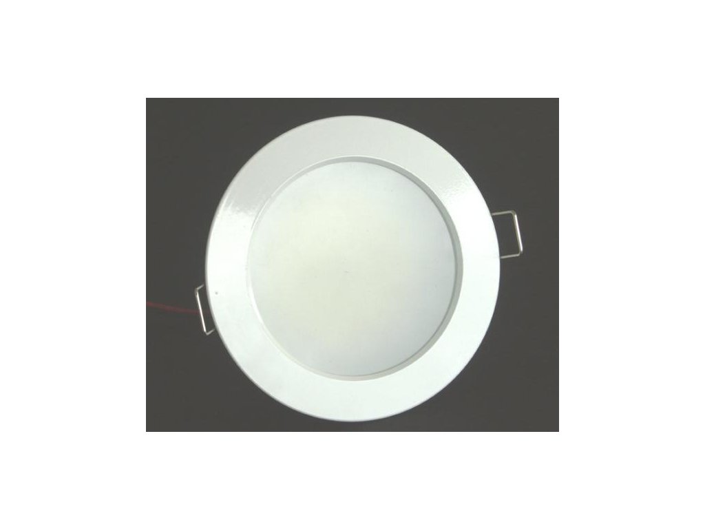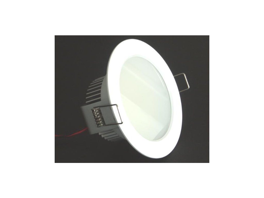 Podhledové svítidlo s pevným ocelovým rámečkem s povrchovou úpravou v bílé barvě a zadním hliníkovým chladičem. Vestavěných 85ks vysocesvítivých LED diod SMD 3528 vydává světelný výkon až 500lm. Montážní otvor 88-92mm, průměr celého svítidla i s lemem 110mm, celková hloubka svítidla je 48mm. Svítidlo je dodáváno včetně matného (prizmatického) skleněného krytu LED diod, který vytváří plnou světelnou plochu svitu bez viditelnosti svítících LED diod. Světla jsou bíle lakovaná.