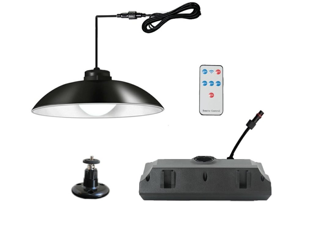 Sada obsahuje univerzální držák pro montáž na plot, střechu nebo fasádu. Vybaven jasnými a energeticky úspornými LED diodami, napájenými vestavěnou baterií a solárním panelem. Nejsou potřeba žádné další zdroje energie. Odnímatelný modul se solárním panelem a dlouhým kabelem mezi svítidlem umožňuje zavěsit solární panel na lepší slunné místo, než je samotná lampa. IR dálkové ovládání umožňuje pohodlné ovládání lampy.