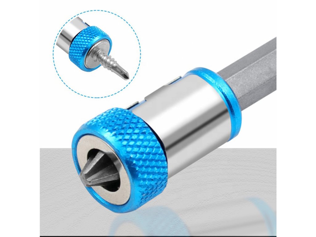 Univerzální magnetický držák se zámkem bitů typu HEX 1/4 palce (6,35 mm). Umožňuje rychlou a efektivní práci. Nastavitelný hloubkový doraz a dvojitý magnet umožňují rychlou a efektivní práci bez rizika poškození povrchu při montáži.