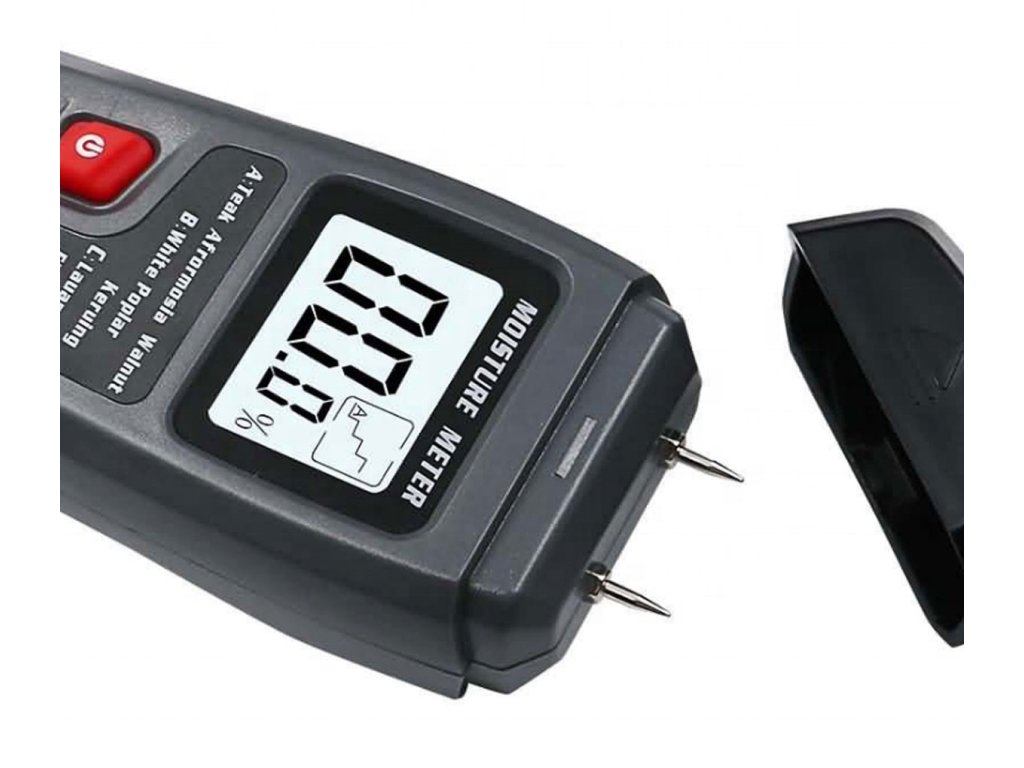 - Obsluha vlhkoměru je velmi jednoduchá! Sundáte ochranný kryt a přitisknete měřící elektrody na kontrolovaný materiál (dřevo).
