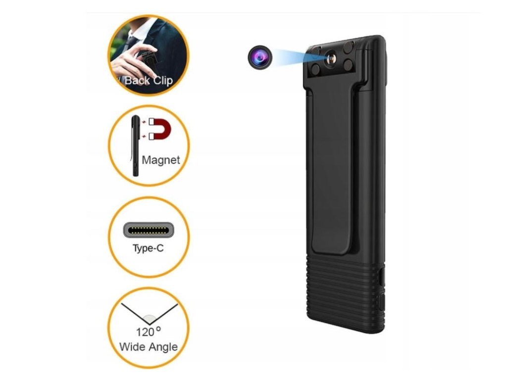 Mini CAM WP46 IR LED WiFi AP - Kamera s klipsem a HD rozlišením,podpora 256GB,IR LED,8 hodin záznamu na plné nabití
