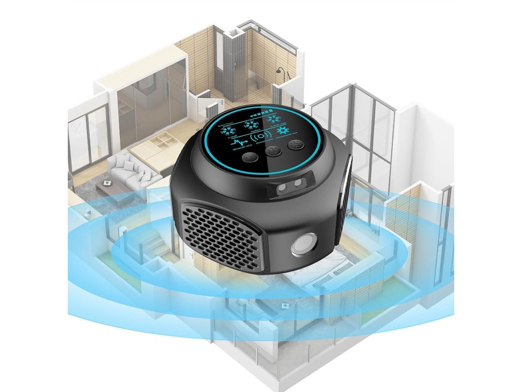- Zařízení vydává zvuky, které dráždí hmyz a hlodavce, aby se mouchy, komáři a myši nepřibližovaly k jeho provozní oblasti.