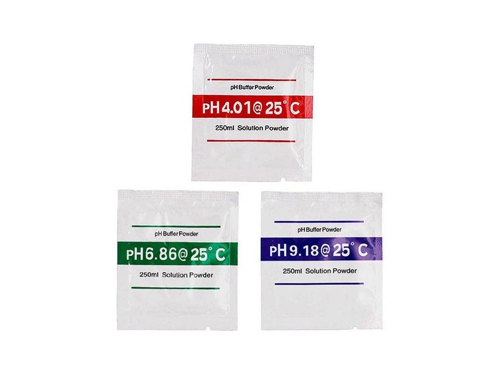 Sada kalibračních roztoků pro správné měření PH, vhodné pro PH metry. V sadě je celkem 3ks sáčků : pH4.00 + pH6,86 + pH9,18.