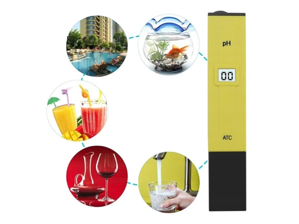 - Elektronický tester kyselosti vody (pH) s funkcí ATC, která zvyšuje přesnost měření v závislosti na teplotě vody.