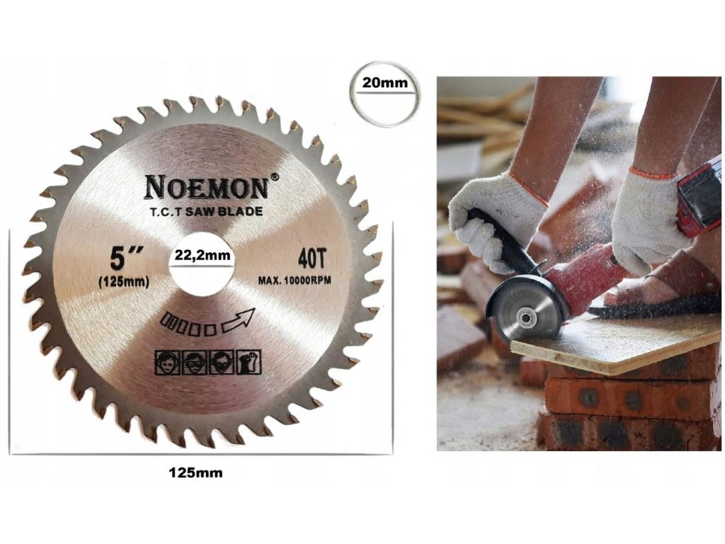 Pilový kotouč NOEMON-125MM - vidiový řezný kotouč na dřevo o průměru 125mm pro vložení do úhlové brusky - rozbrusky