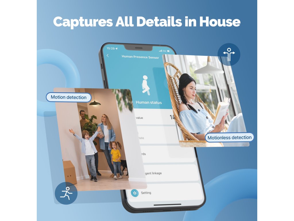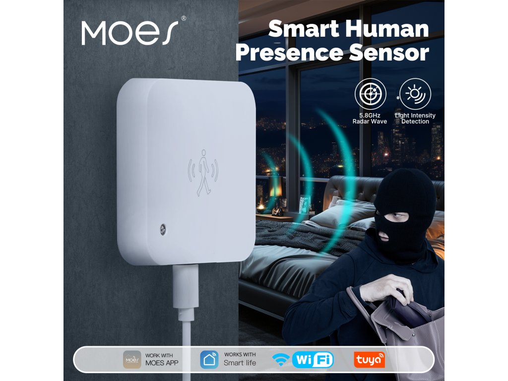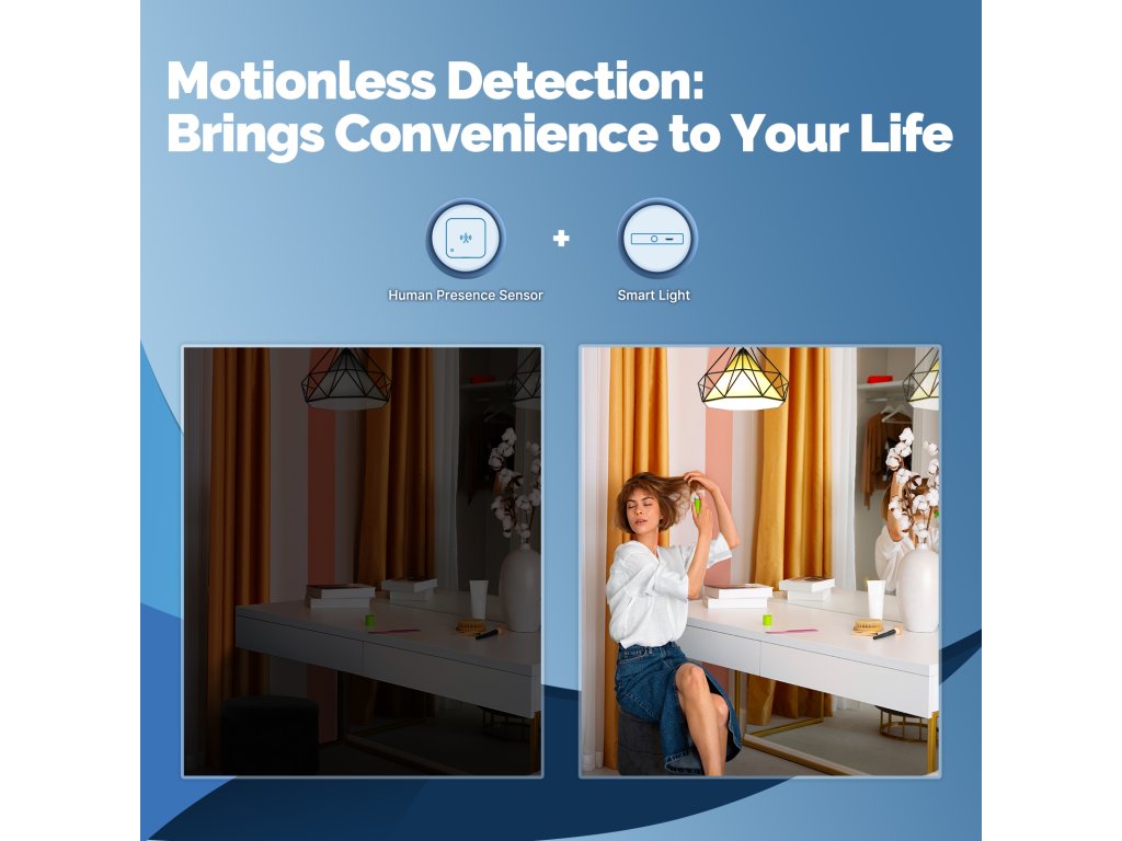 Tento senzor je sofistikované a chytré zařízení určené k detekci lidské přítomnosti a optimalizaci osvětlení a spotřeby energie ve vašem domě. Tento inteligentní senzor využívá mikrovlnný radar 5,8 GHz, který dokáže detekovat osobu až do vzdálenosti 6 metrů. Monitoruje také okolní osvětlení a dech, takže lze používat i na kontrolu vitálních funkcí společně s dalšími chytrými zařízeními pro chytrou domácnost Tuya Smart.