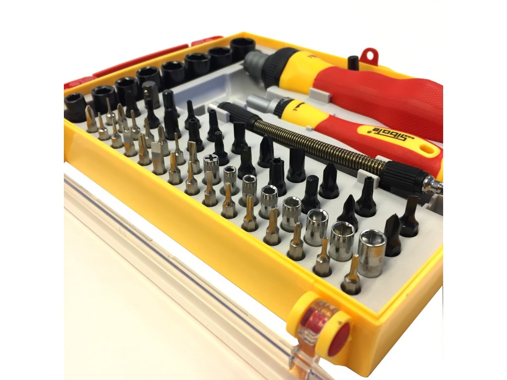 SADA GOLA 2141-62 - 62-dílná sada bitů s multifunkčními šroubováky + 2 prodlužovací nástavce