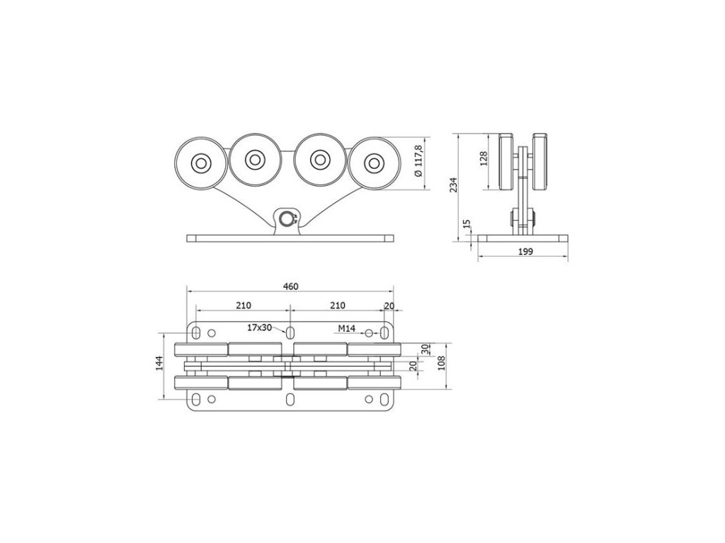 Sada je určena pro samonosnou bránu do 15m průjezdové šíře a je složena z velmi kvalitních masivních profesionálních dílů výrobce IBFM se stálým tvarem materiálu a povrchovou úpravou (C profil je bez povrchové úpravy a to z důvodu, že se zinkování celé brány dělá až po navaření C profilu). Všechny díly této sady jsou sestaveny tak, aby nebylo nutné dokupovat další díly pro vyrobení mechanické (ručně ovládané) posuvné samonosné brány. Profil v celkové délce 9m se navaří na spodní rám brány (rám doporučujeme vyrobit z jeklu min. 100x80 do max. 12m délky (dle délky profilu. V případě použití na delší brány je nutné dokoupit C profil do požadované délky brány). Rám brány musí být robustní a stabilní, aby nedocházelo k prověšení brány a také k velkým bočním výkyvům.