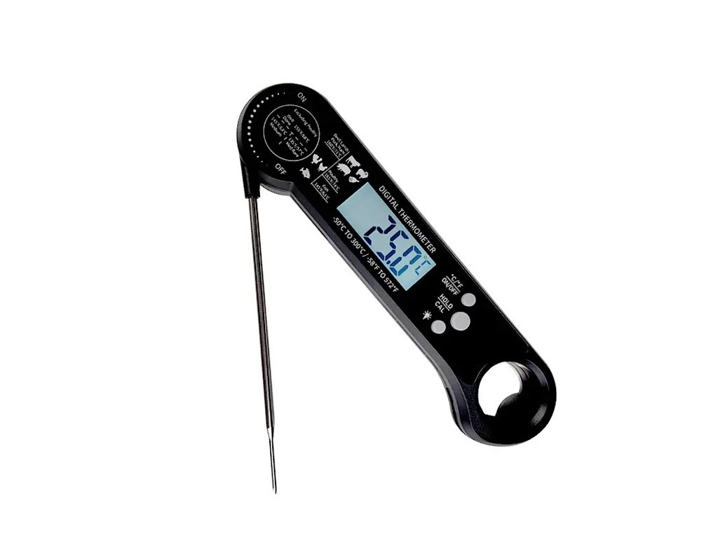- Teploměr umožňuje pohodlnou kontrolu teploty jakéhokoli produktu. Neocenitelné, když nechcete připálit nebo upéct dort nebo opékat maso