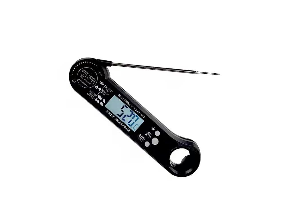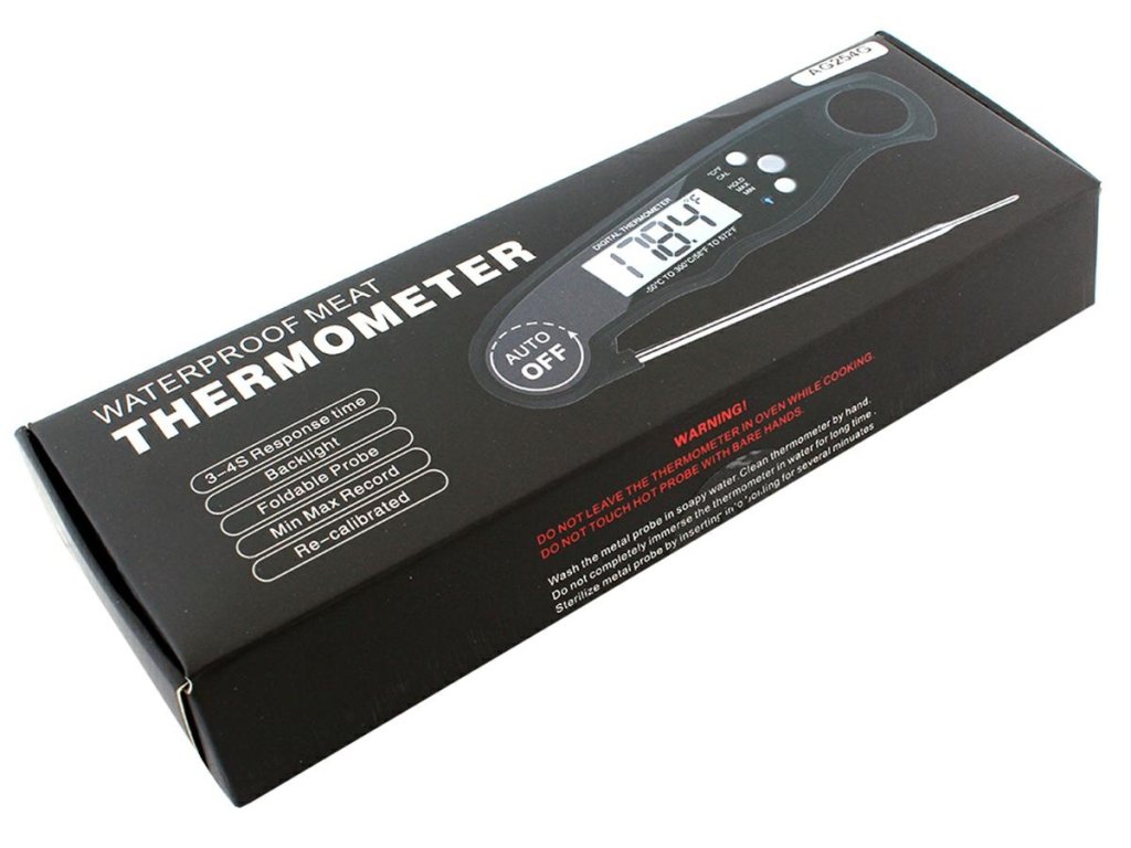 Elektronický vodotěsný kolíkový teploměr s 11,6 cm teplu odolnou sondou. Je ideální pro měření teploty uvnitř připravovaného jídla. Přístroj má čitelný, podsvícený LCD displej, který usnadňuje čtení měření. Dlouhá, žáruvzdorná sonda umožňuje snadné zasunutí do pokrmu a měření teploty například masa. Teploměr má spoustu užitečných funkcí, jako je možnost uložit měření nebo jej připevnit na magnet. Velmi široký teplotní rozsah a voděodolnost IP67 z něj činí vynikající nástroj, který nám výrazně usnadňuje kontrolu teploty pečených pokrmů a kuchyňských prací.