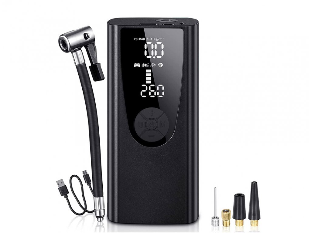 Přenosná pumpa na pneumatiky s dobíjením přes USB: Naše elektrická pumpa na vzduch je dostatečně malá, abyste ji vložili do kapsy, kabelky, zásuvky nebo prostoru v autě. Dodává se s odolnou taškou pro uložení a přenášení plynového generátoru a souvisejícího příslušenství. Baterie elektrické vzduchové pumpy má kapacitu 8000 mAh