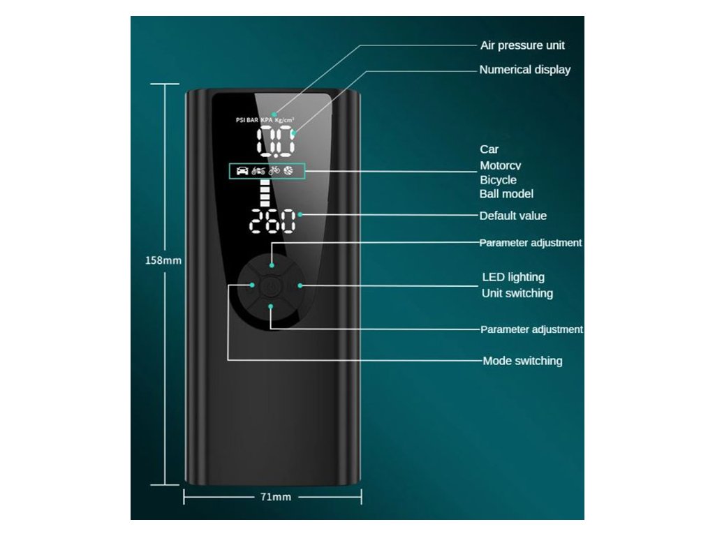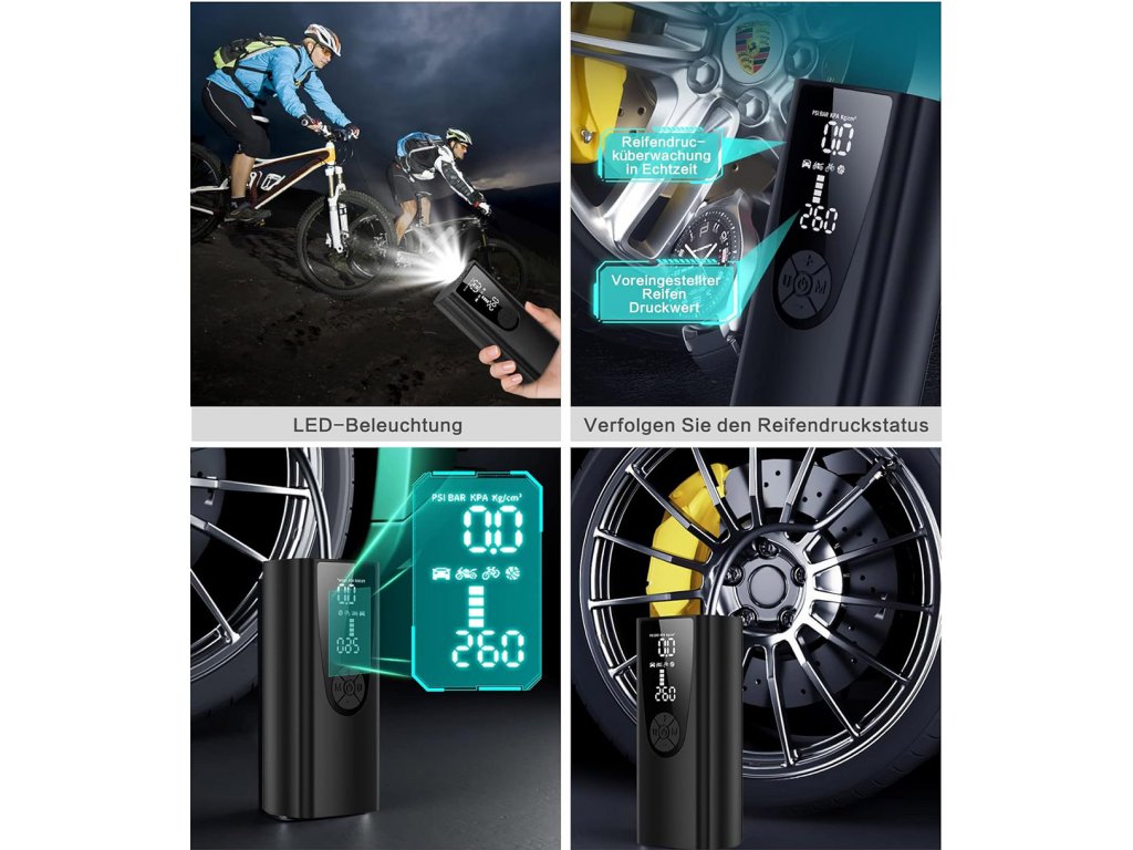 Digitální displej a nouzové světlo: Naše kolo s elektrickou vzduchovou pumpou má 4 volitelné jednotky: PSI, BAR, KPA, kg/cm2 a až 150 PSI. S digitálním displejem můžete jasně vidět a zvolit správný typ nafouknutí, který potřebujete. Vestavěné LED světlo dokáže pneumatiku nejen osvítit při huštění, ale také v případě nouze.