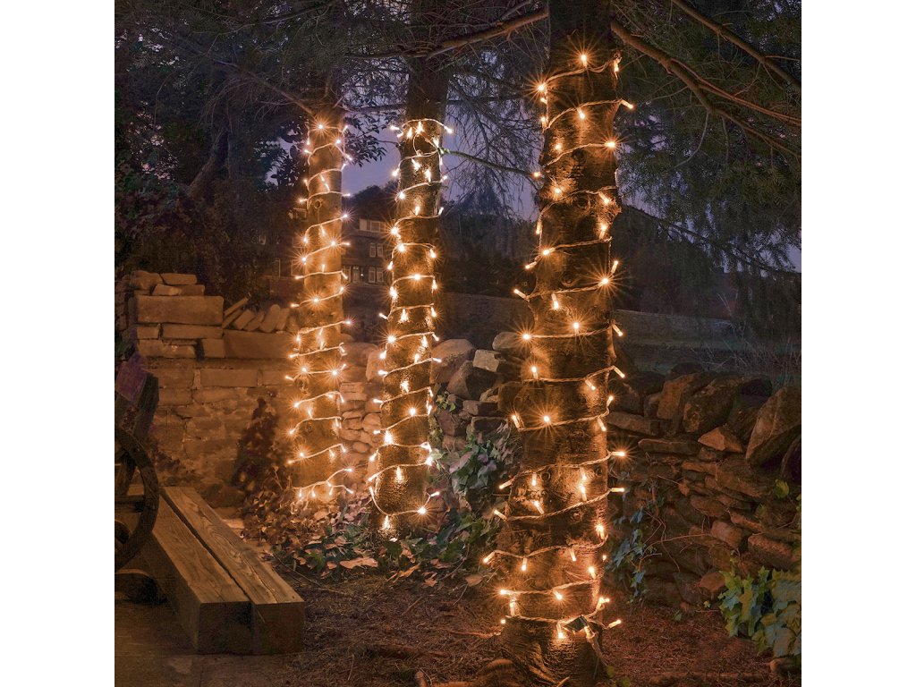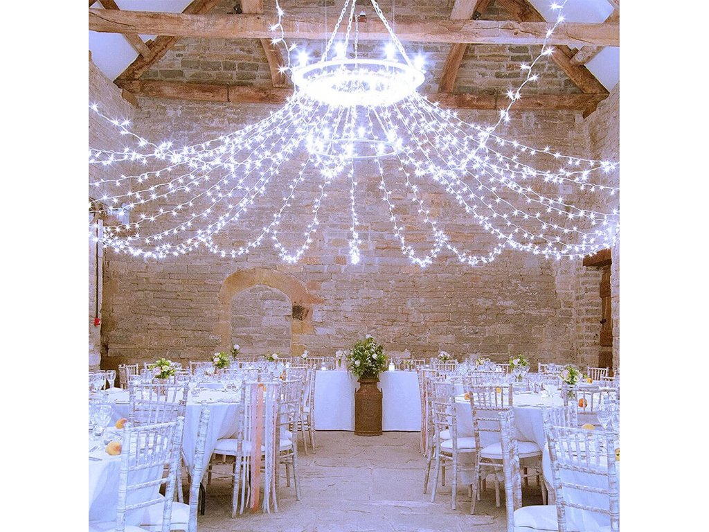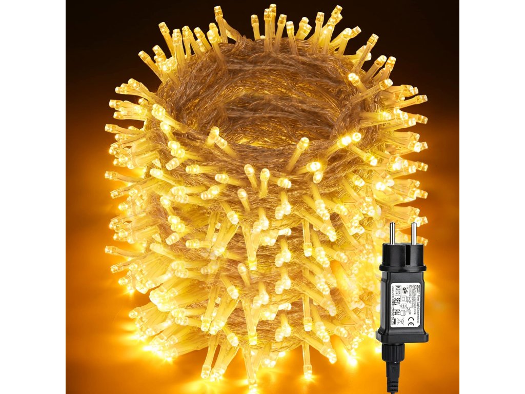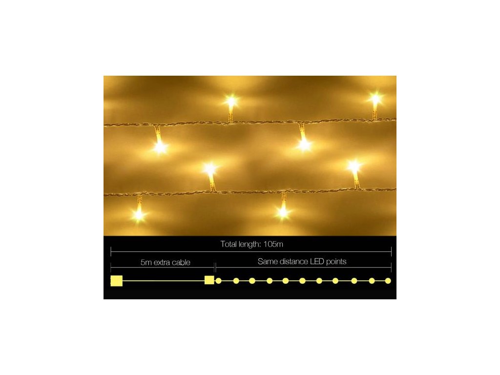 Dekorační led osvětlení 100 m se svitem studené bílé, bílé teplé a modré barvy, 1000x LED. Světelný 100m řetěz je vhodný pro vnitřní i venkovní použití - jak na zahradu, dům, na plot, na strom, terasu, okno či chodbu. Osvětlení není výhradně určeno pro dobu Vánoc, ale můžete ho využít i pro dekorativní účely při zvláštních příležitostech (svatby, narozeniny, party). LED diody jsou oblíbenou náhradou za klasické žárovky. Oproti klasickým žárovkám LED diody nevyzařují teplo, jsou odolné proti otřesům a můžete díky nim ušetřit téměř až 90% energie, které byste jinak spotřebovali u klasických žárovek. Průměrná životnost LED diody je 20.000 hodin svícení (normální žárovka cca 1000-2000 hodin v závislosti na svítivosti). Světelné funkce lze nastavit přímo na adaptéru. Každý řetěz obsahuje spínač přímo na adaptéru, pomocí kterého měníte mezi osmi způsoby svícení (blikání, pozvolné rozsvícení a další).