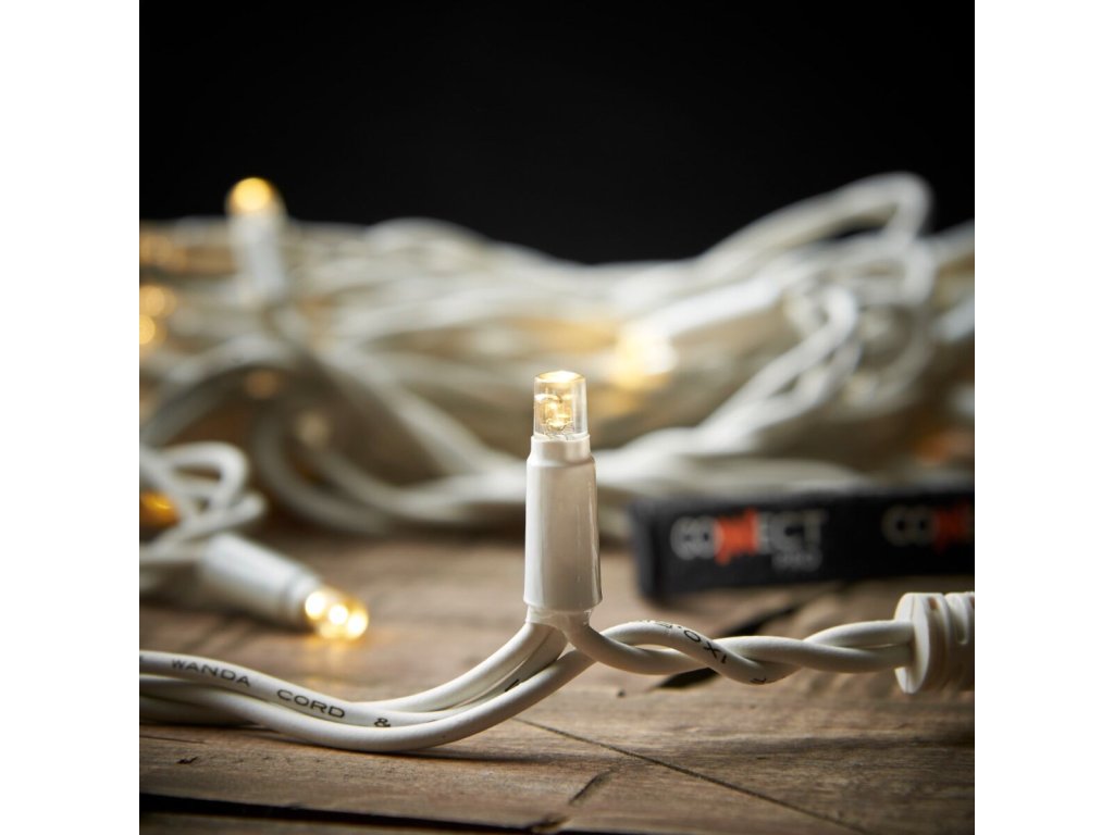 VOR 100M - 1000x LED bílý kabel- dekorační světelný řetěz na bílém kabelu, svit bílá, bílá teplá a modrá, světelné programy, nap. adaptér 230V